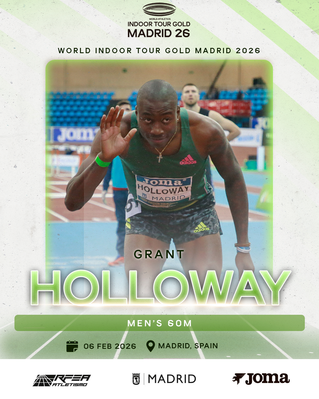 Cinco años después de batir el récord del mundo de 60 metros vallas, Grant Holloway vuelve al World Indoor Tour Madrid el próximo 6 de febrero, en la cuarta cita del circuito mundial de World Athletics en categoría Gold. El legendario vallista estadounidense regresa a la capital española en busca de nuevos retos y será el hombre a batir en la recta del CDM Gallur, donde correrá los 60 metros lisos.