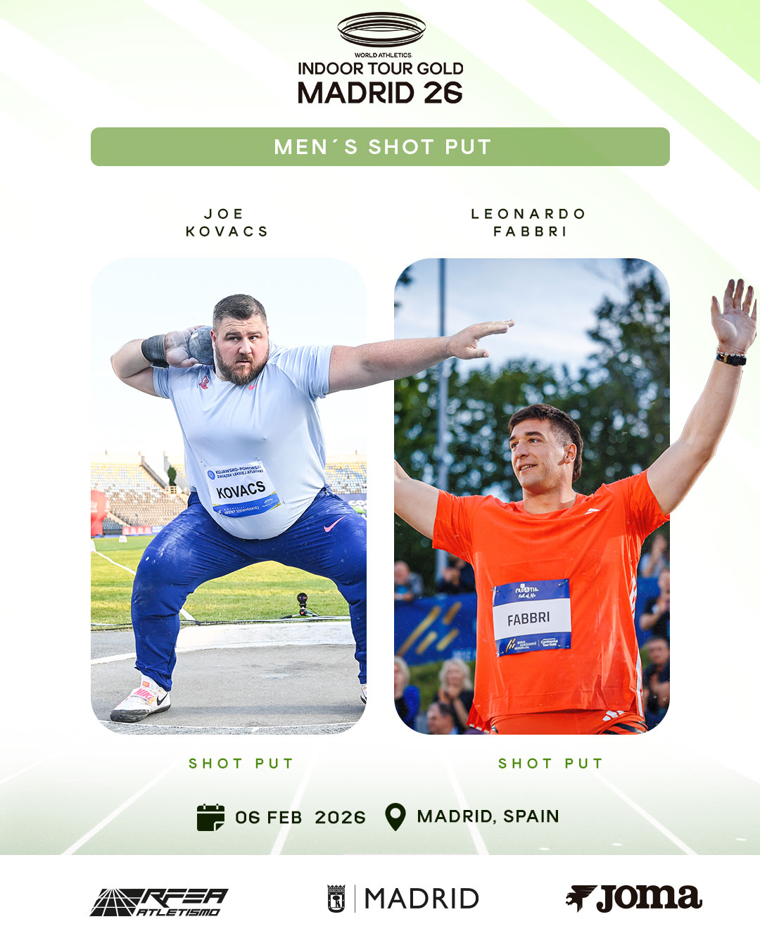 On February 6th, the best shot putters on the planet will face off in the World Indoor Tour Madrid, the fourth stop on the World Athletics Gold category world circuit.